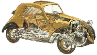 einem Motor mit 4 Zylindern getriebt. Kupplung in monodisc im trocken, Wechsel mit 4 gängeb und Rückseite Marsch. Mit 13 PS um 4000 rpm. Im motor wird Aluminium gebracht. Es besitzt seitliche Ventile. |